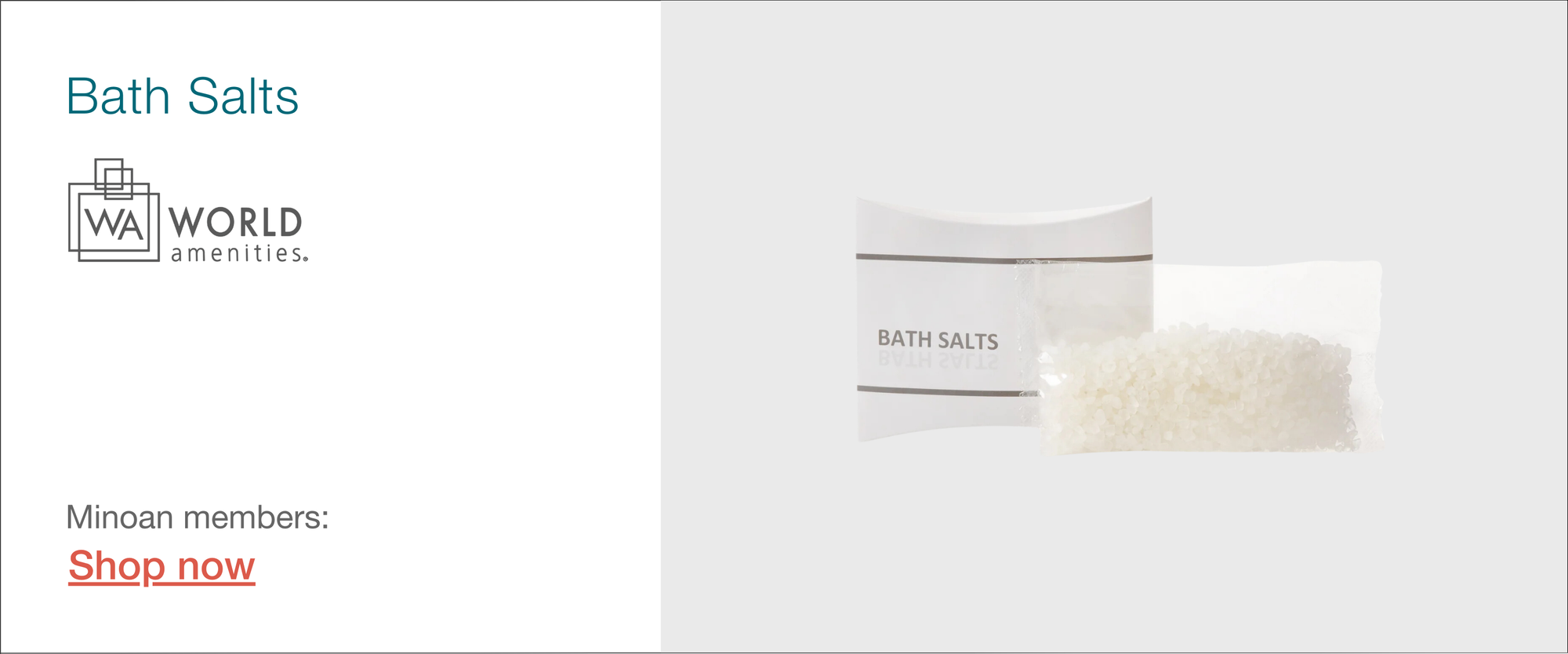 World Amenities Bath Salts are a soothing and aromatic addition that will make your bathroom feel like a luxurious spa. These are individually packaged for hygiene.