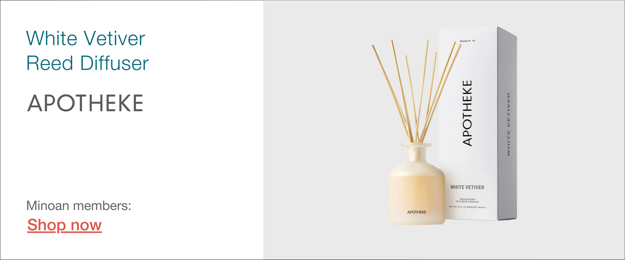 This high-quality Apotheke white vetiver reed diffuser will keep your bathroom smelling fresh and inviting, without any risk of an open flame.